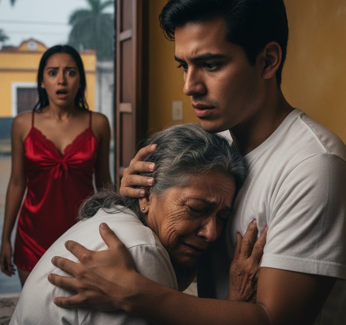 Holding her breath, she pressed her ear to the door. From inside, Doña Teresa’s weary voice pleaded, “Son, please bring me the ointment, my back aches terribly.” Diego replied tenderly, “Of course, Mom. Lie down a bit; I’ll apply it for you.”