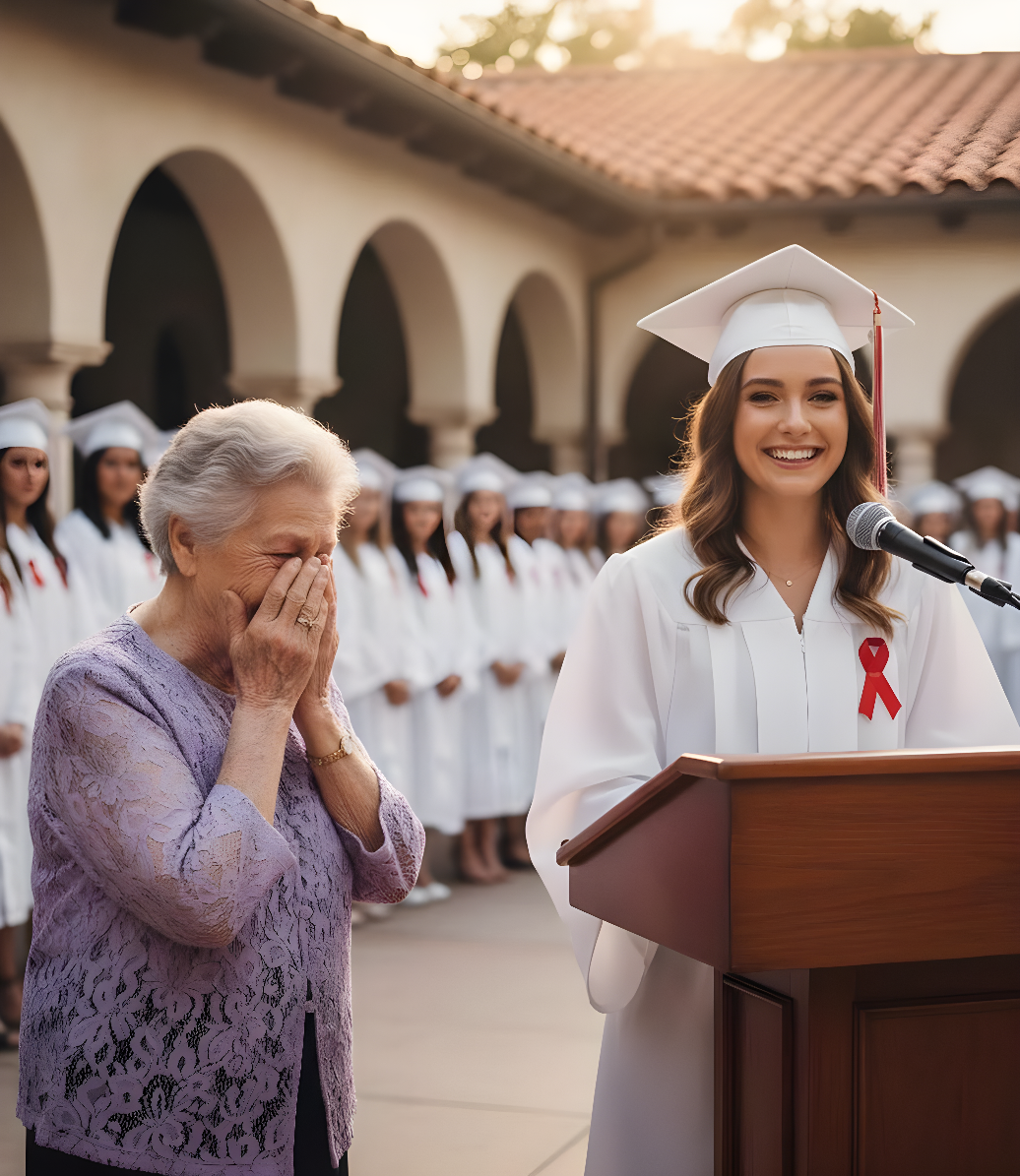 From the back row of the auditorium, her mother watched—soiled and tired, yet beaming with pride.