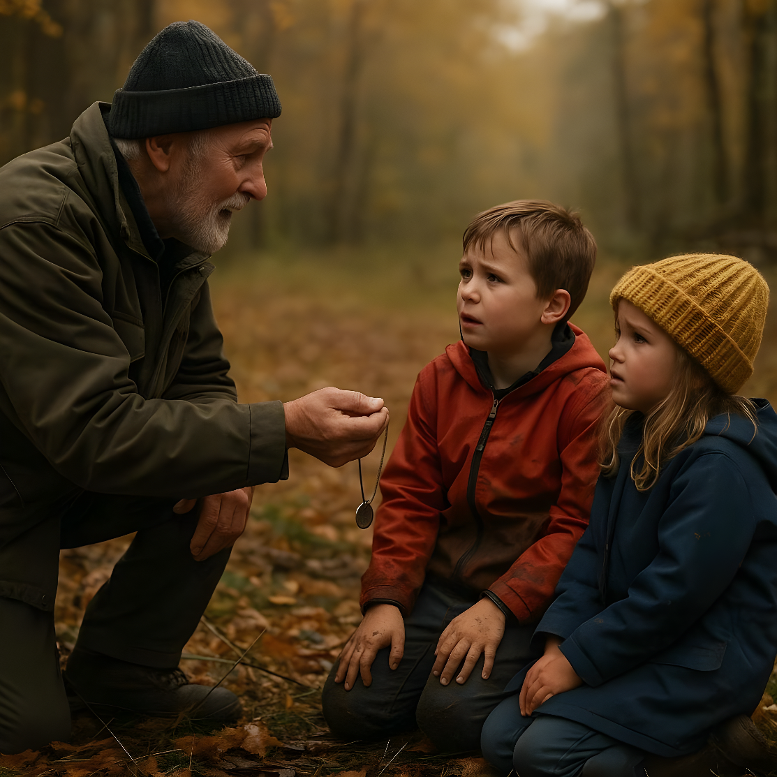 The old woman froze at the sound of that name. The smile on her lips trembled, and for a heartbeat, time seemed to stop. The children clung to her skirt, still breathless from their adventure, unaware that something far greater than fear or relief was unfolding before them.