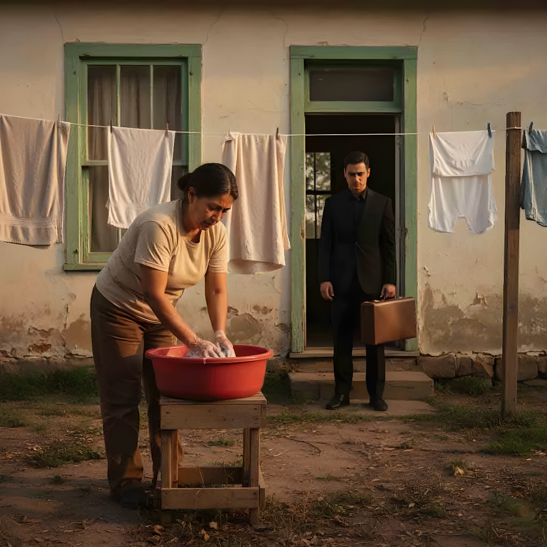 The following morning, Ethan abandoned his business trip plans. Without explanation, he returned home ahead of schedule. When he found Lily washing clothes outside, he moved silently behind her, wrapping his arms around her. Her gentle smile reflected surprise and concern.