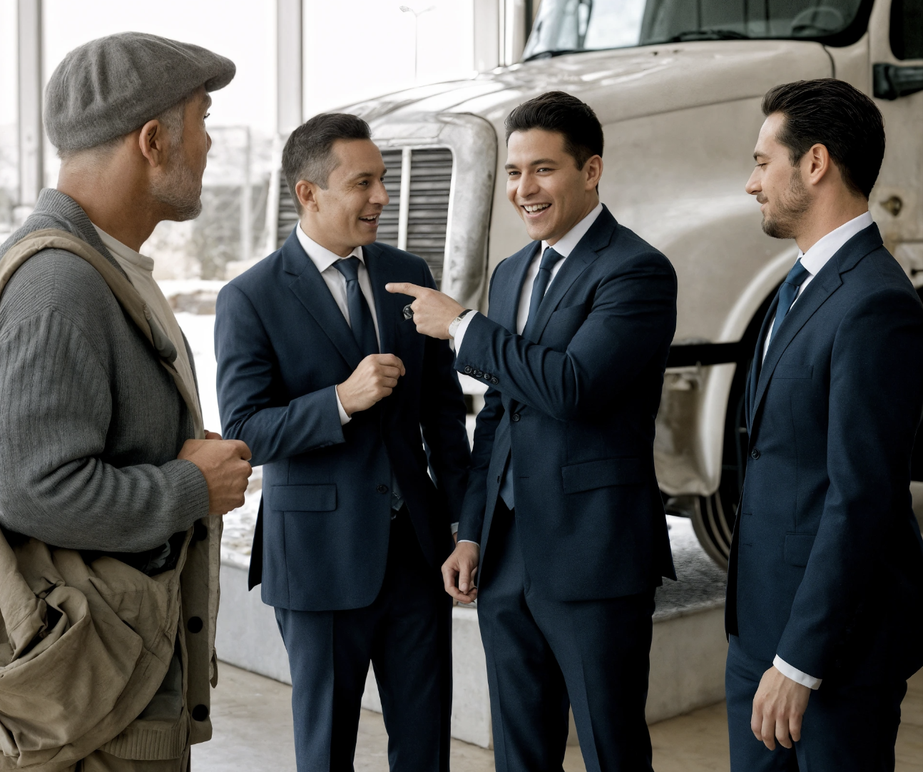 “Agreed?” The three shook hands in a silent pact. Three months later, Lucas received a young man with grease-stained clothes inquiring about financing a truck. He offered him a coffee. He treated him with absolute respect, explaining every available option. The boy did not make a purchase that day but returned two weeks later with his father, a transport entrepreneur who ended up buying four units.
