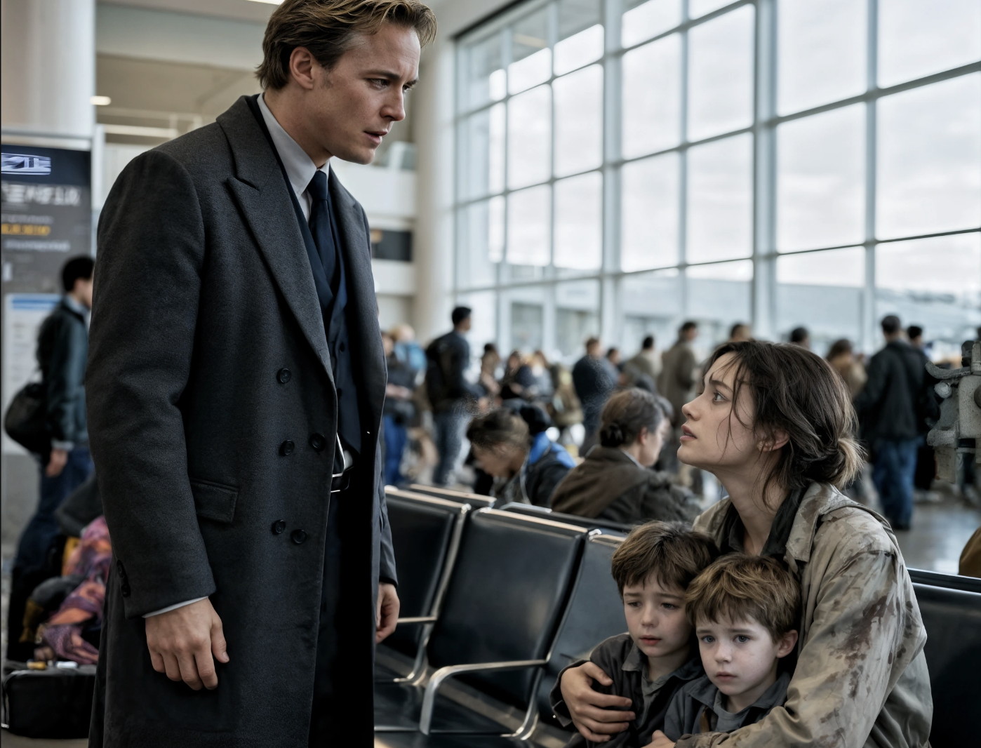 Strangers passed by in a stream. Announcements crackled overhead. But in that moment, nothing else existed — only the woman he had forgotten and the children he had never known.