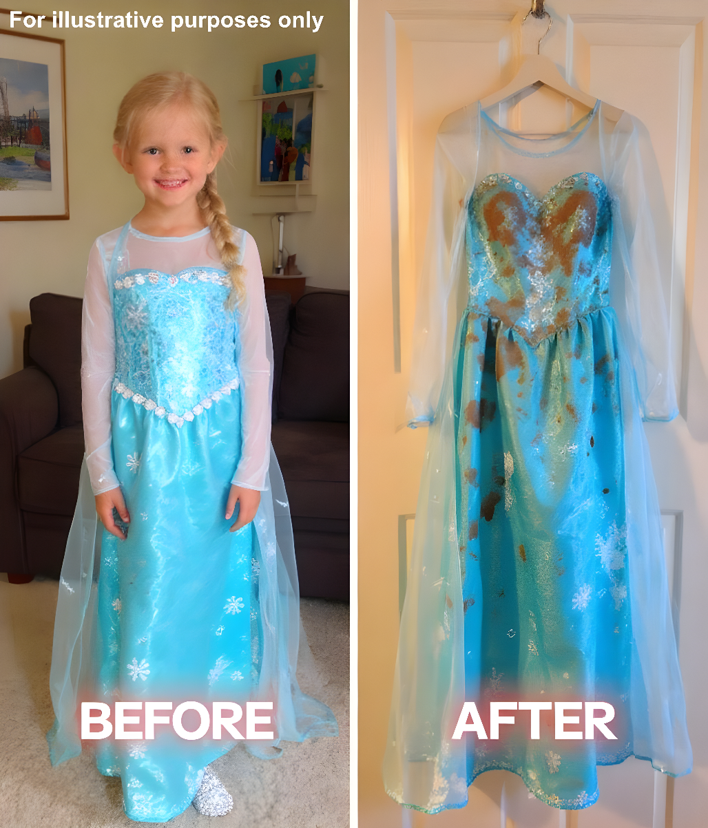 On the ground, the Elsa dress lay in tatters. It was as if a beautiful secret had been unveiled only to be brutally torn apart. Snowflakes lay ripped apart, while the shimmering cape was jaggedly shredded, stained with angry marks of red.