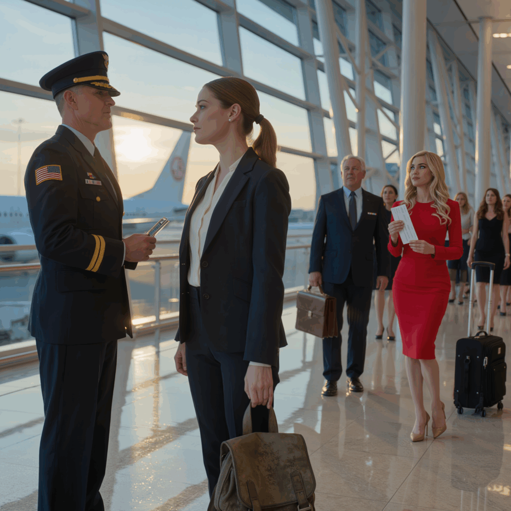 The terminal didn’t fall silent, not exactly. It merely adjusted, as though someone had dialed down the volume. Faces shifted. At the entrance of the jet bridge, my father halted mid-stride. Sloane’s First Class ticket hung limply as if burdened by its weight.