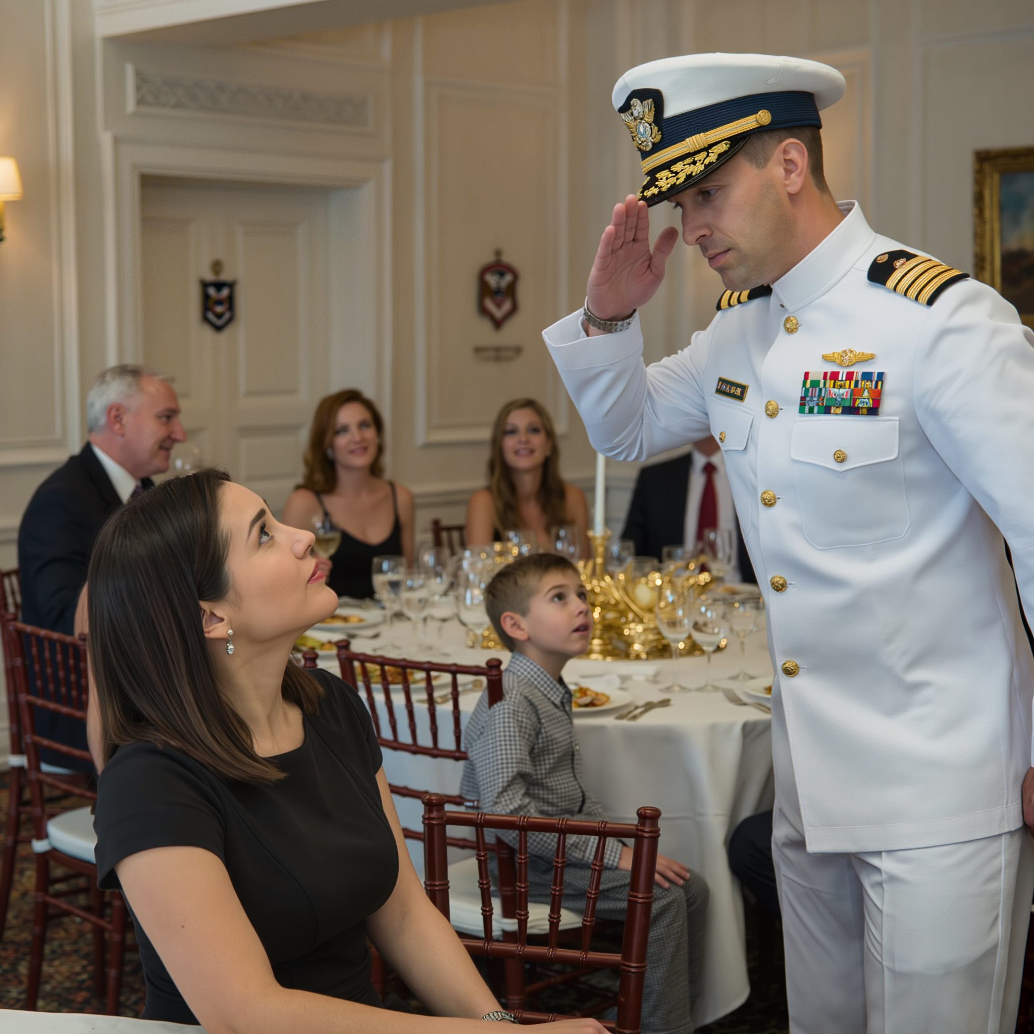A fork clattered to the floor. Someone inhaled sharply. My father froze in disbelief. Talia’s confident demeanor faltered. I slowly stood and returned the salute with a nod.