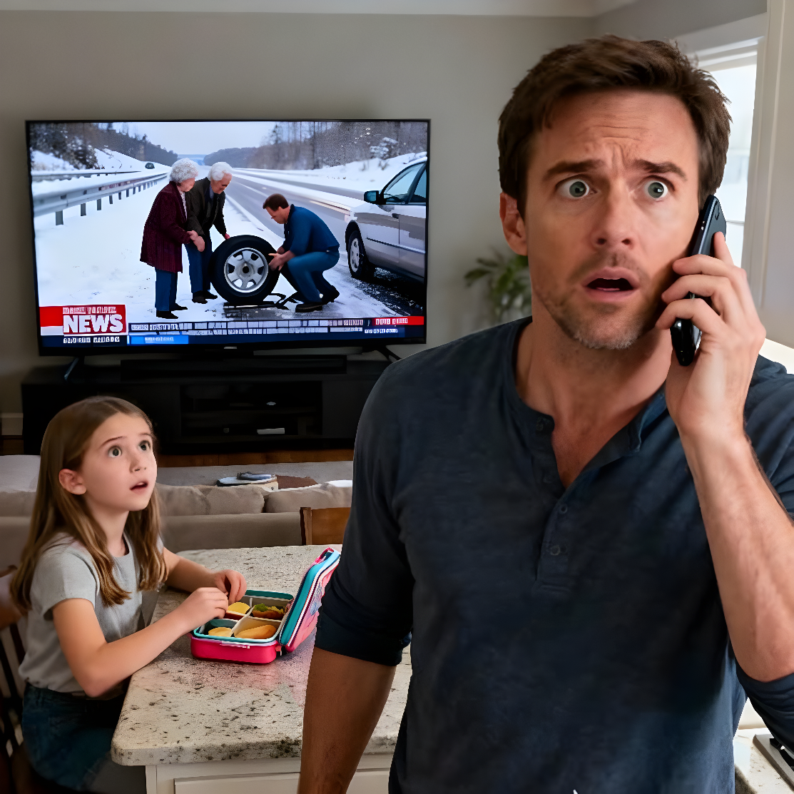 I saw myself on-screen, bent alongside their vehicle, wrestling with lug nuts while snow swirled around us. My hair was flattened by the wind, my face reddened by the cold. In the background, Emma’s little face pressed against the window of my car, eyes wide with fascination.