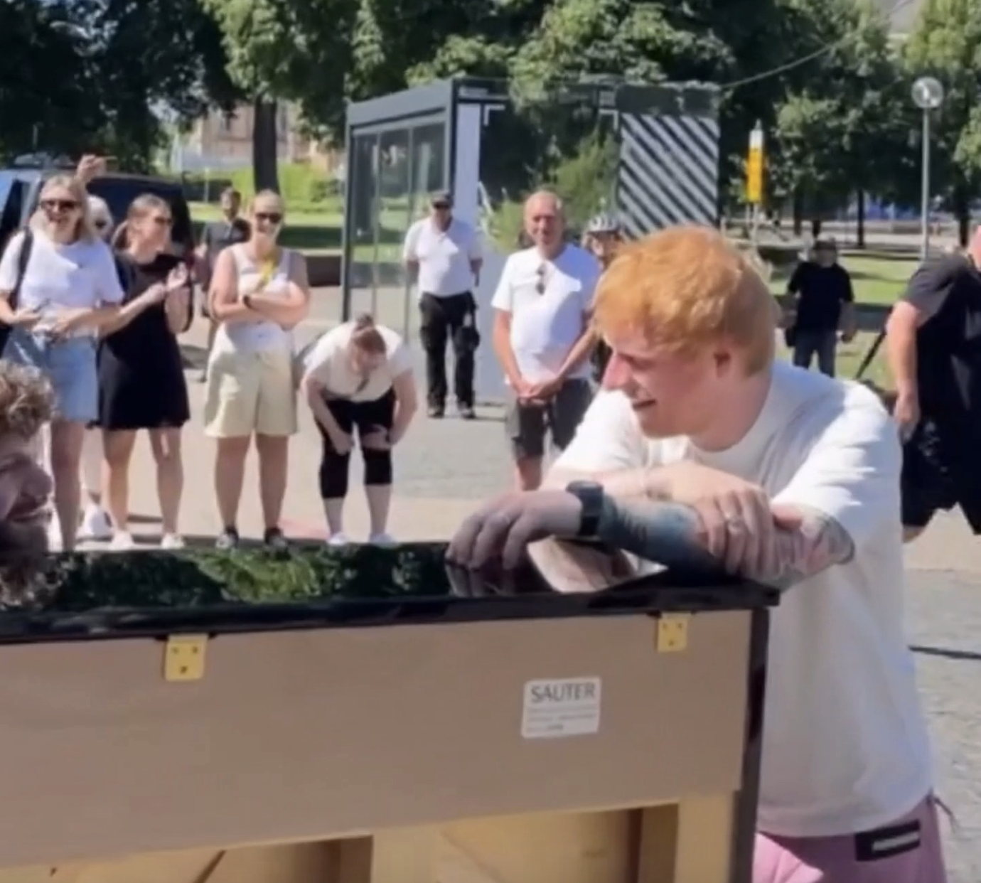Imagine setting up your piano on a bustling street, ready to share your music with passersby, hoping to connect with a few people. Now, imagine a global superstar, one of the biggest names in music, casually walking up and joining you for an impromptu performance. For one lucky street musician, this unbelievable scenario became a reality when none other than Ed Sheeran decided to make his day. The video captures the initial disbelief and then pure joy of the musician as Ed Sheeran approaches his piano. The caption “Imagine playing on the street and suddenly Ed Sheeran joins you” perfectly encapsulates the surreal nature of the moment. Ed Sheeran, known for his down-to-earth personality and love for spontaneous music, leans against the piano, a warm smile on his face, ready to make some magic.